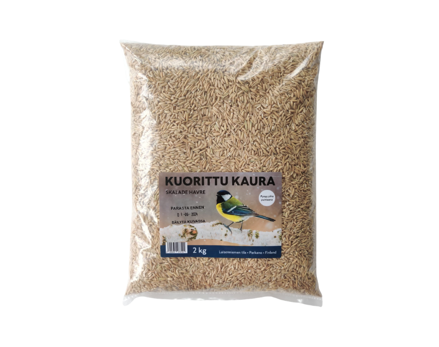 Tarjoa linnunkauraa lintulaudalla, ruokinta-automaatissa tai maaruokintapaikalla. Sopii monille pihalinnuille osaksi monipuolista ruokintaa.